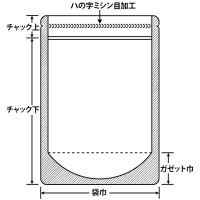 サイズ[mm]:チャック上35+チャック下260x袋幅180(ガゼット幅53)