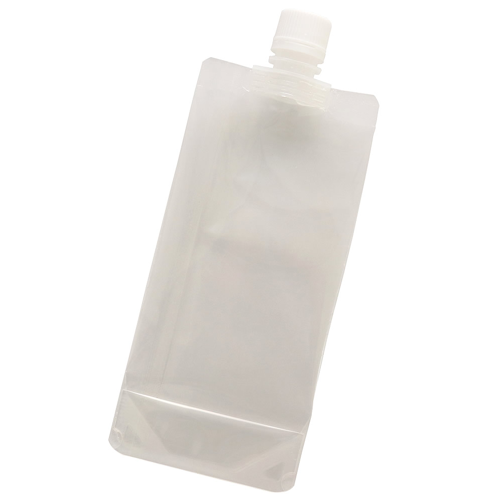 ・内容物を90%ほどパウチに充填した後、本体部分を軽く押して袋内に残る空気をすべて出した状態でキャップを締めると綺麗に仕上がります。