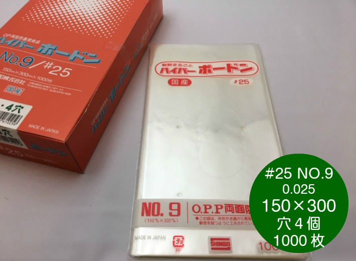 OPP ハイパーボードン #25 NO.9 4穴 0.025×150×300mm 1000枚入 信和 (プラマークなし)(領収書対応可能)防曇袋 野菜袋 出荷袋 OPP ボードン