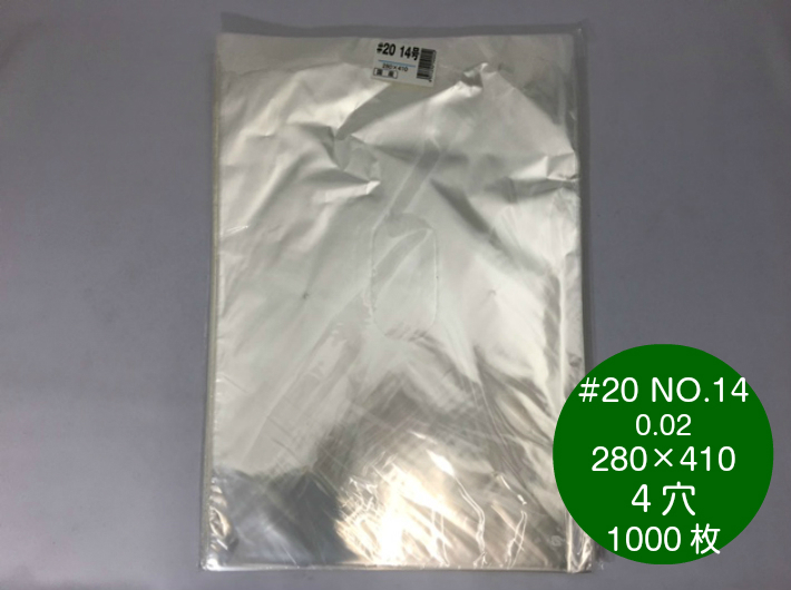 OPP ハイパーボードン #20 NO.14 4穴 0.02×280×410mm 1000枚 信和 (プラマーク入)(領収書対応可能) 防曇袋 野菜袋 出荷袋 特大 OPP ボードン