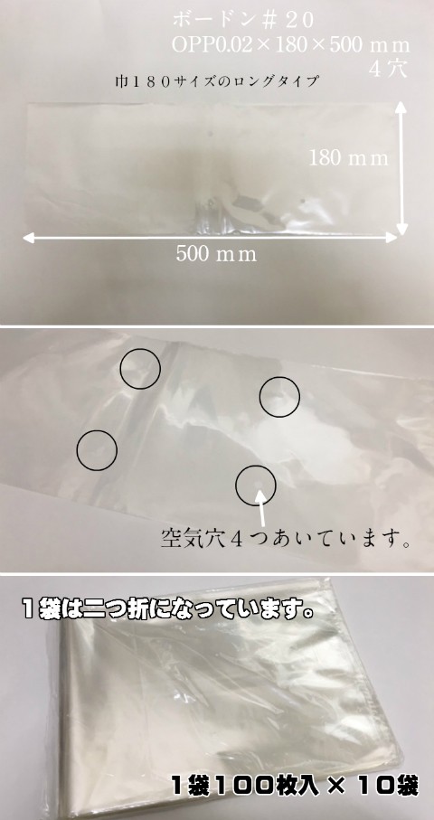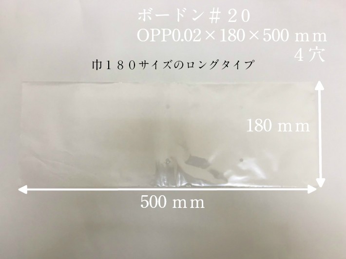 オリジナル OPP ボードン #20×180×500 4穴 0.02×180×500mm 1000枚入 (プラマークなし)防曇 防曇袋 野菜袋 出荷袋 長物袋 OPP ボードン