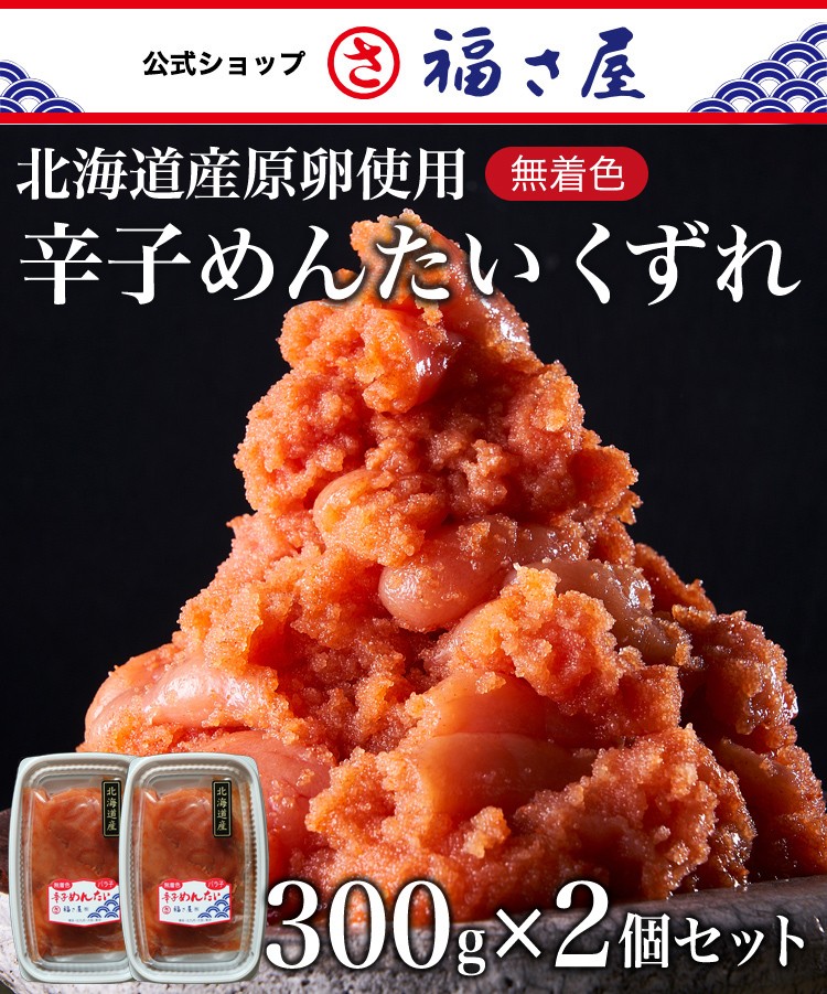 北海道産原卵使用 家庭用 無着色 辛子めんたい 並切れ 300g×2個セット くずれ 送料無料 公式 辛子 めんたい 福さ屋 ふくさや