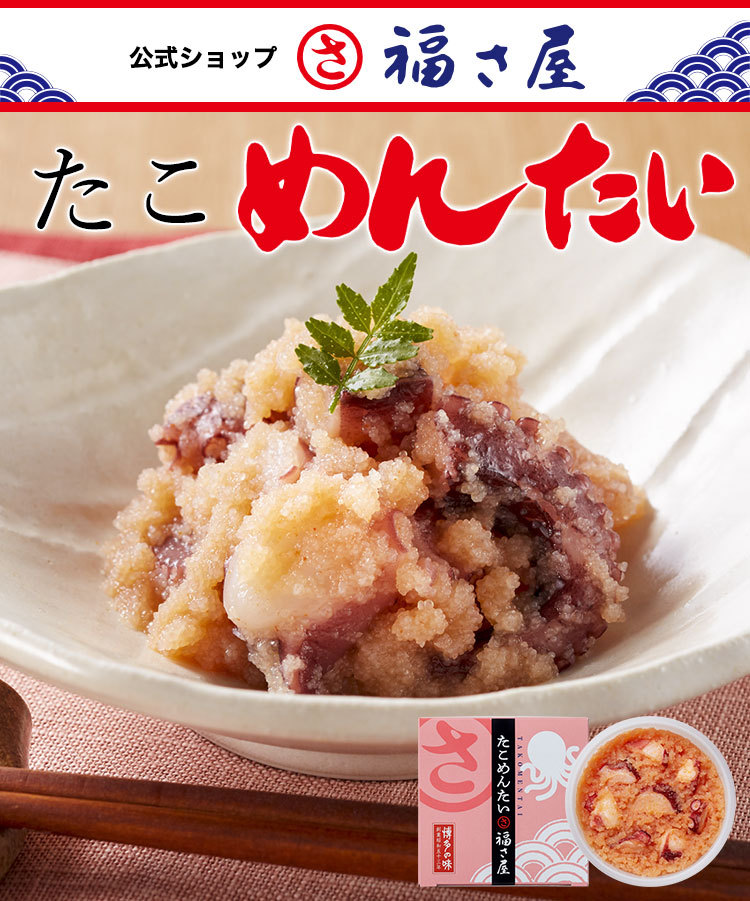 | 原材料 | すけとうだらの卵(ロシア又はアメリカ)、真たこ(モーリタニア)、食塩、発酵調味料、澱粉、かつお節エキス、昆布エキス、唐辛子、米酢、魚醤、酵母エキス/調味料(有機酸等)、甘味料(ソルビット)、酸化防止剤(V.C、亜硫酸塩、エリソルビン酸Na)、増粘多糖類、ナイアシン、pH調整剤、発色剤(亜硝酸Na)、酵素、(一部に大豆を含む) |