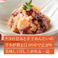 ぷりぷりとした食感のタコの甘みと、辛子めんたいの辛さが程よく口の中で広がり美味しく召し上がれる一品です。