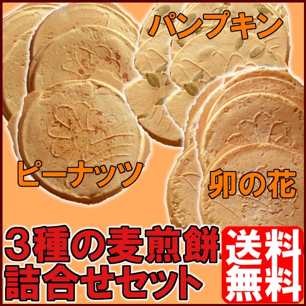 麦せんべい お試しセット (3種の詰合せ 各8枚入) 手作り 福島名物