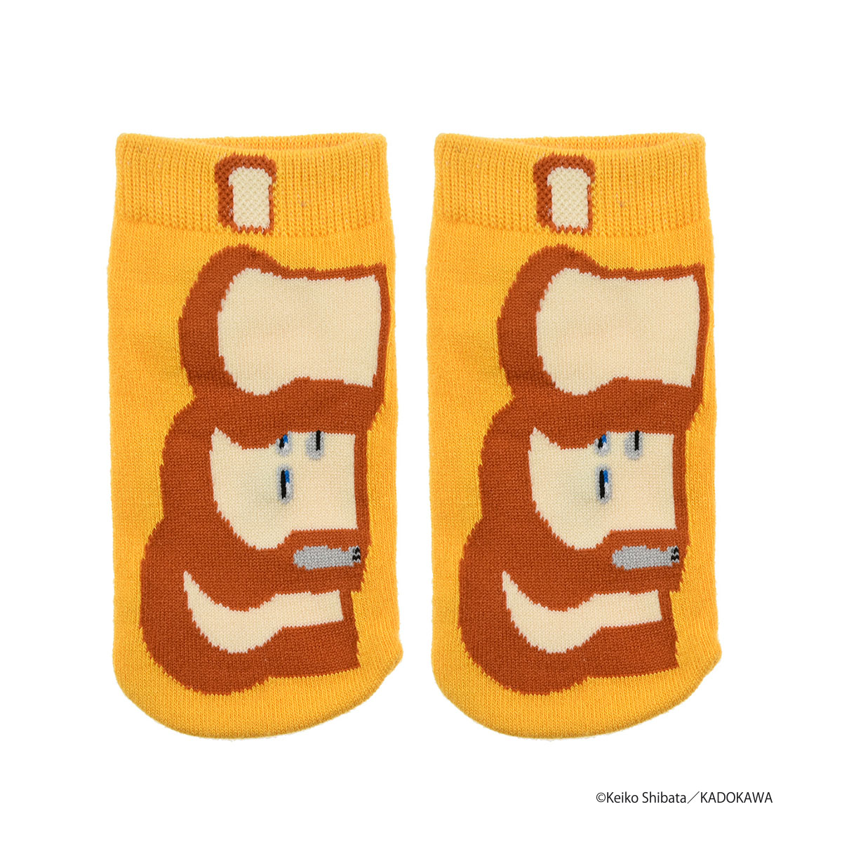 大人気絵本「パンどろぼう」からスニーカー丈ソックスの登場です。食パンに紛れるパンどろぼうがおもしろく可愛い一足です。