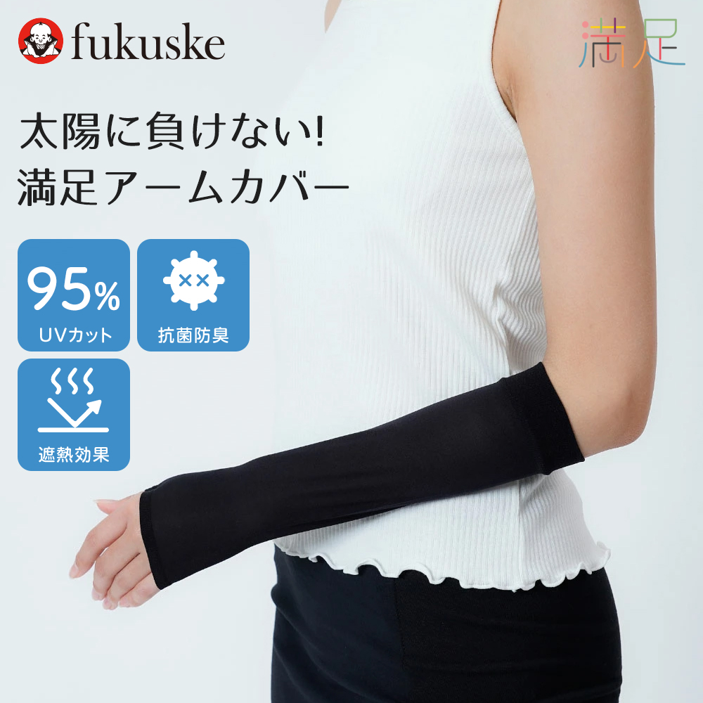 満足 アームカバー ブラック無地 ショート丈 親指穴付き ストッキング素材 抗菌防臭 遮熱 福助 公式 婦人 女性フクスケ fukuske