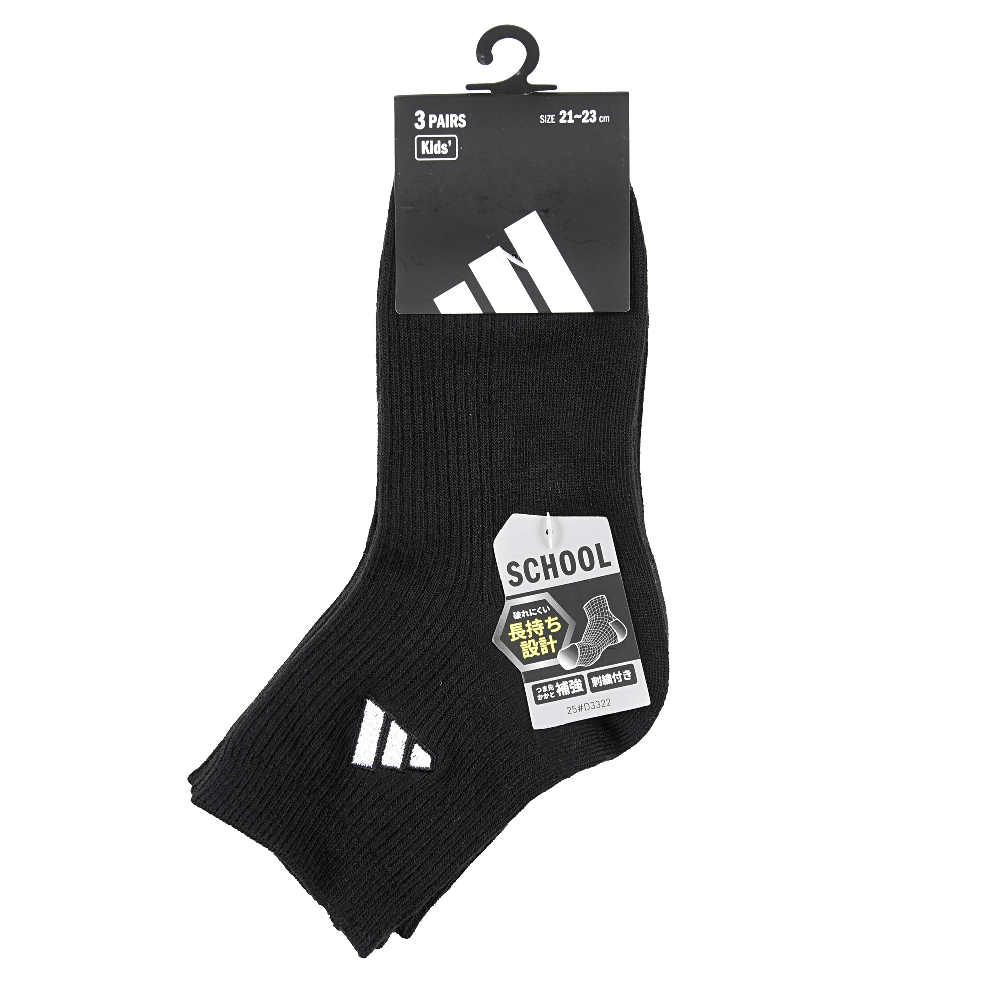 adidas アディダス 靴下 ショート丈 無地 ロゴ 片面刺しゅう SCHOOL 123-35V3 福助 fukuske ふくすけ