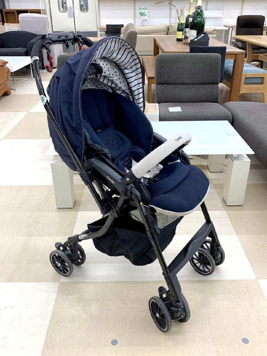 Combi コンビ ホワイトレーベル メチャカル ハンディ オート4キャス エッグショック HG プリュイネイビー (NB) 両対面式 ベビーカー 中古品