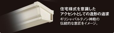 アイアン素材だから実現した流麗でシンプルなフォルム「シビスルケア」は、アクロポリス・パルテノン神殿のサイマレクタ(2重曲線)と呼ばれる伝統的な意匠を取り入れました。やわらかなカーブがつくりだす独特の陰影が、軒先の曲線美を強調します。