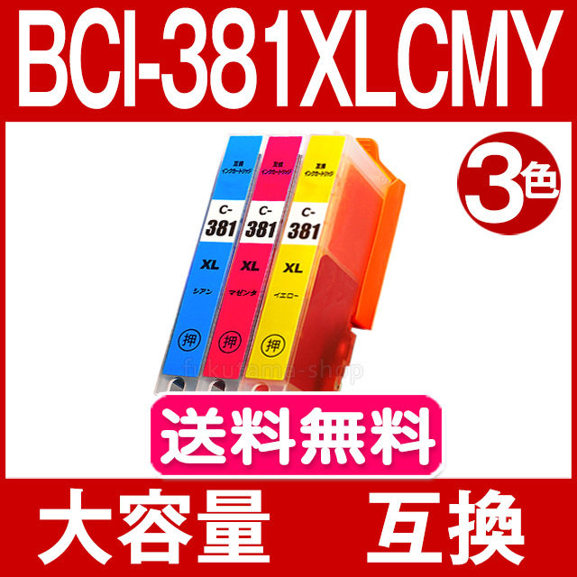 純正同様にお使いいただける キヤノン BCI-381XLC/M/Y 3色セット 大容量(標準サイズの約1.5倍) 互換インクカートリッジです。残量検知機能に対応していますので、そのままセットするだけでご使用いただけます。