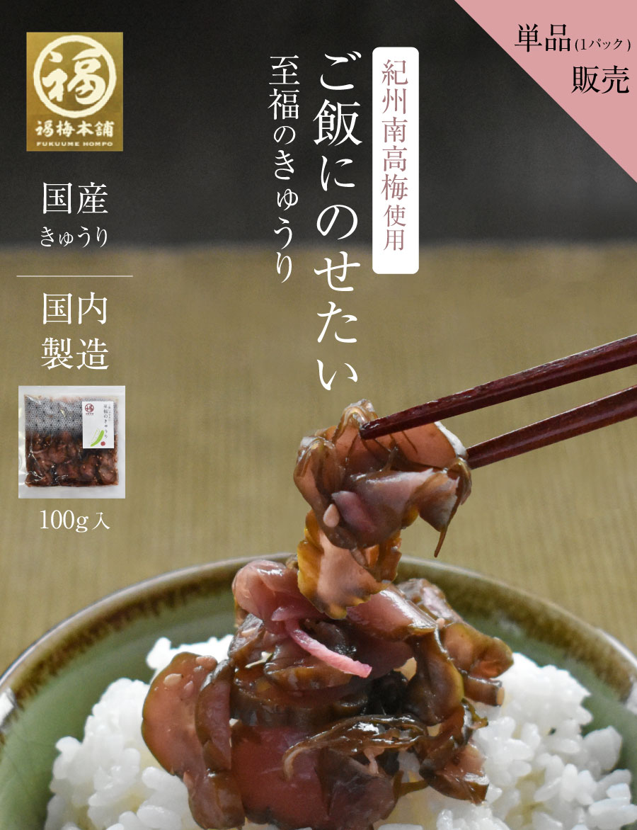きゅうり 漬け物 国産 ご飯のお供 梅肉 梅干し 至福のきゅうり100g(12/12(金)09:59まで)