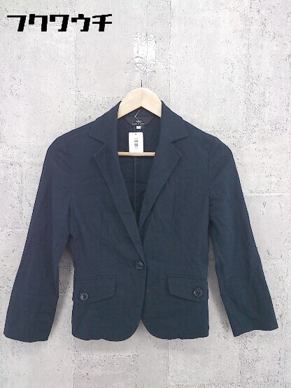 ◇ INED イネド リネン混 長袖 ジャケット サイズ7 ネイビー レディース