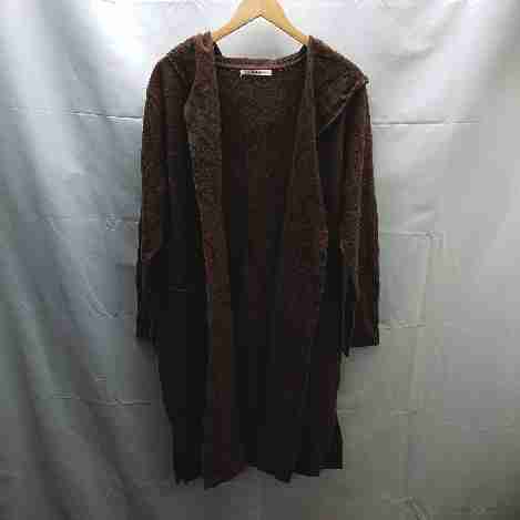 ◇ Leshy forest フード シンプル ロング 長袖 ジャケット カーディガン サイズ表記なし L相当 ブラウン レディース E