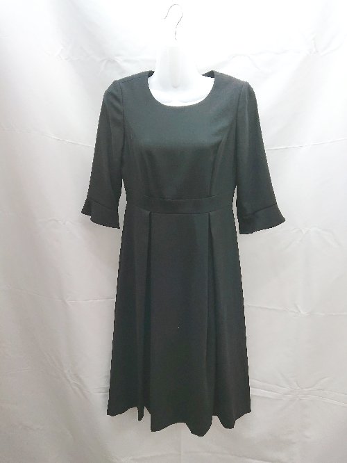 ◇ YH CLADDICO 冠婚葬祭 ブラックフォーマル 肩パッド 小さい 七分袖 膝丈 ワンピース サイズ7 ブラック レディース E