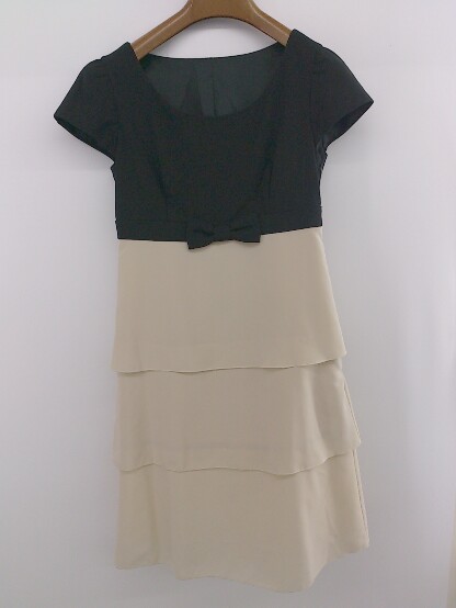 ◇ ef-de エフデ バイカラー リボン フォーマル 半袖 ミニ ワンピース サイズ7 ブラック ベージュ系 レディース E