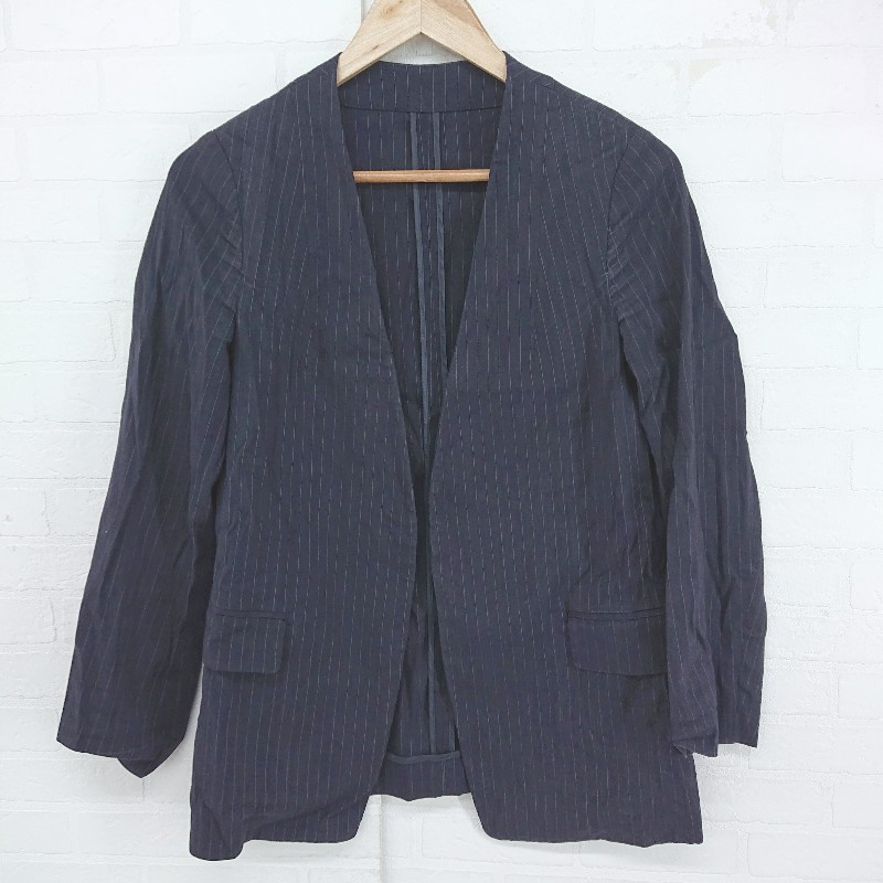 ◇ SHIPS シップス ピンストライプ リネン混 涼しげ 長袖 ジャケット サイズ36 ネイビー レディース E