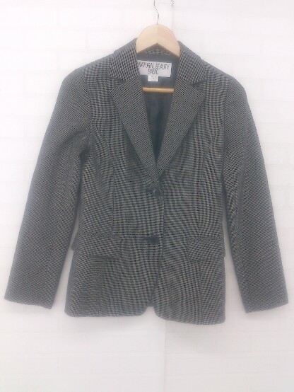 ◇ NATURAL BEAUTY BASIC 総柄 ウール100% 2B 長袖 ジャケット サイズM ブラック ホワイト系 レディース E