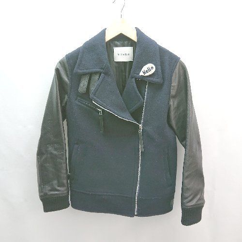 ◇ Spick&Span ヤギ革 かっこいい フロントジップ ワッペン 長袖 ジャケット サイズ38 ネイビー メンズ E