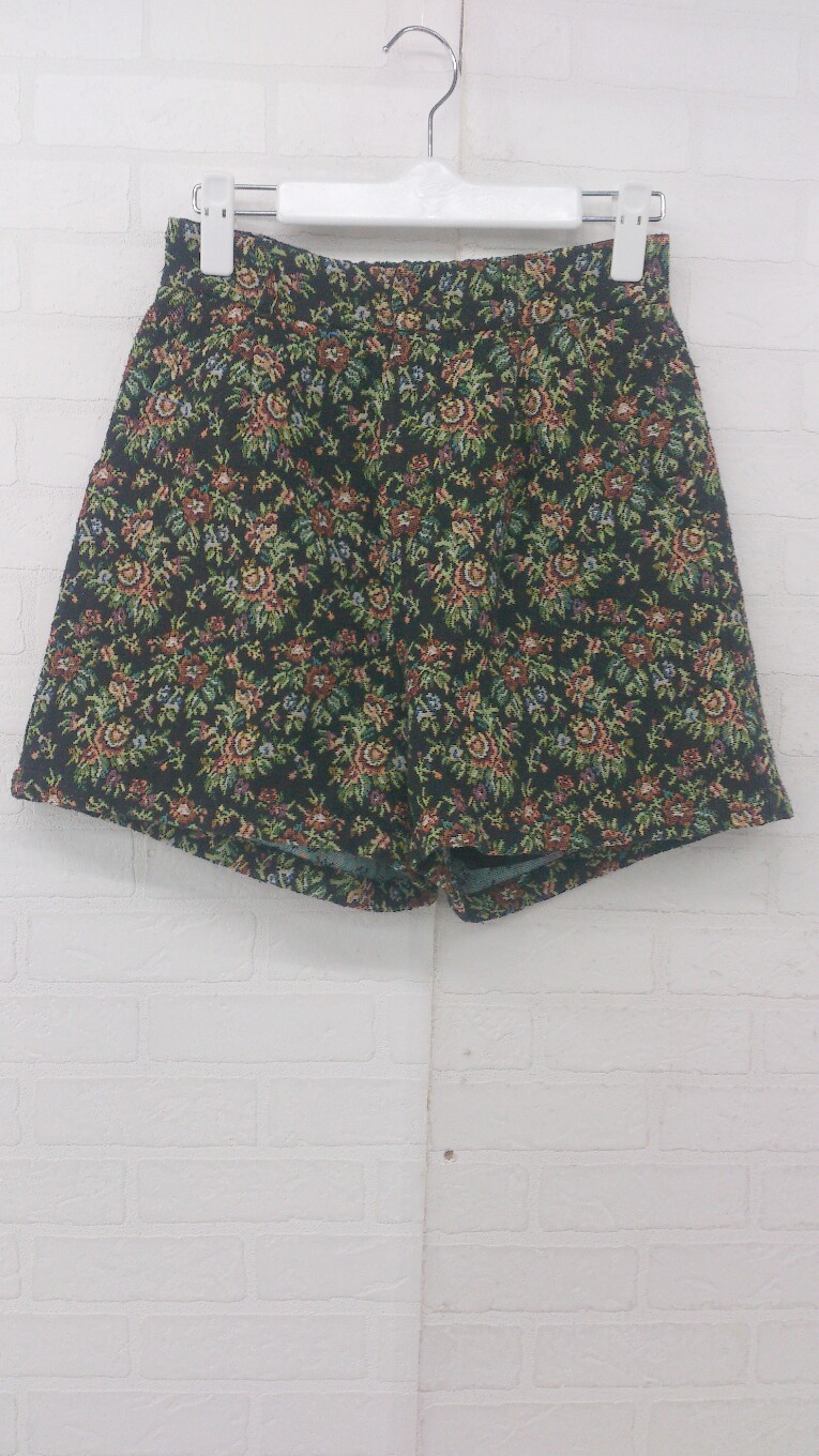 ◇ MAJESTIC LEGON 総柄 ゴブラン織り ショート パンツ サイズM ブラック グリーン系 マルチ レディース E