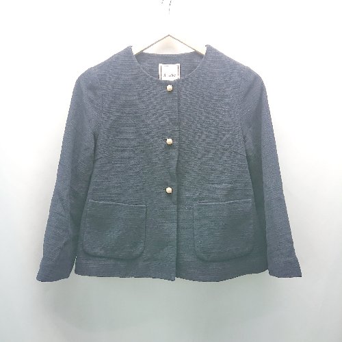 ◇ anatelier アナトリエ ツイード 無地 ノーカラー シンプル 長袖 ジャケット サイズ36 ネイビー レディース E