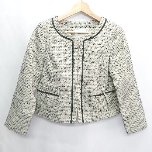◇ Couture Brooch クチュールブローチ 長袖 ノーカラージャケット サイズ36 アイボリーブラック レディース E