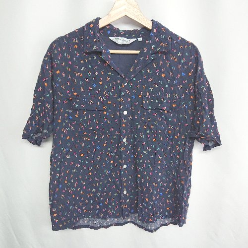 ◇ ⊂ niko and … ニコアンド ダンス柄 半袖 ポロシャツ サイズM ネイビー レディース E
