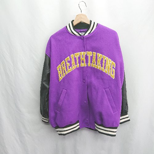 ◇ ⊇ WEGO ウィゴー ワッペン 長袖 スタジャン サイズF パープル レディース E