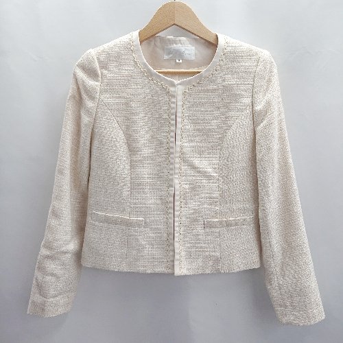 ◇ ⊇ ShelMore シェルモア ノーカラー ツイード 長袖 ジャケット サイズ9号 アイボリー レディース E