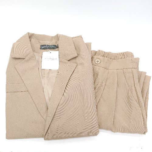 ◇ Θ MEI HAN HUI YI JIAO 総裏 ウエストゴム オフィスカジュアル S パンツスーツ サイズM キャメル系 レディース E