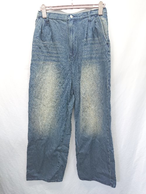 ◇ Θ Alfred Alex アルフレッドアレックス タック デニム ワイド パンツ サイズL ブルー メンズ E