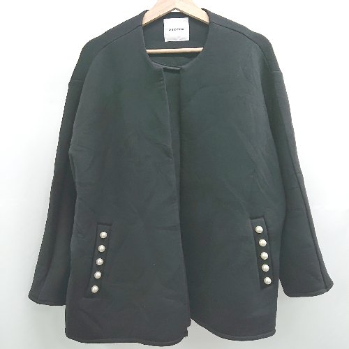 ◇ Θ ピッチン 上品 華やか 長袖 パール付きノーカラージャケット サイズM ブラック系 レディース E