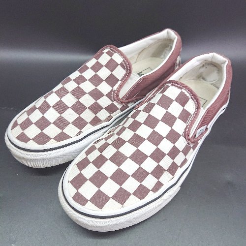 ◇ Θ VANS ヴァンズ ブロックチェック スリッポン オールド スクール サイズ22.5 ブラウン系 レディース E