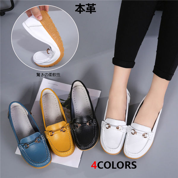 レディース モカシン 靴 本革 ビットタイプ フラットシューズ コンフォートシューズ 大きいサイズ 衝撃吸収 走れる 通勤用 春夏 送料無料
