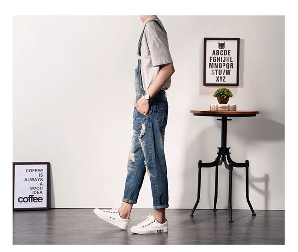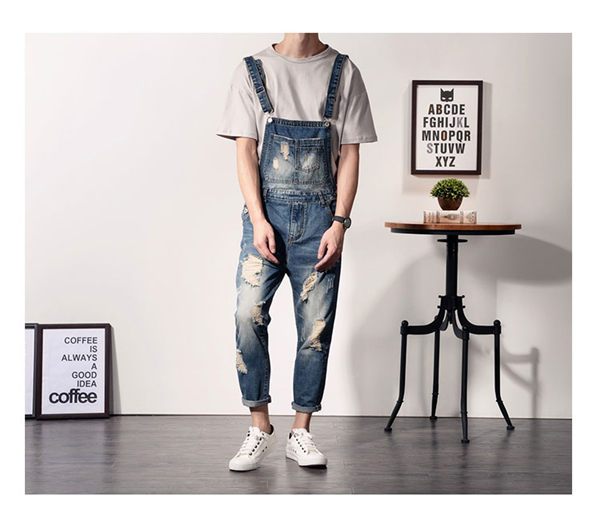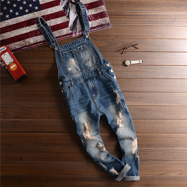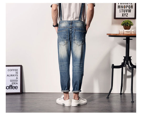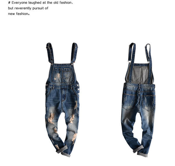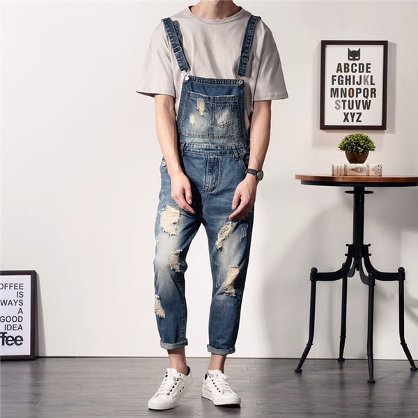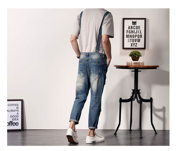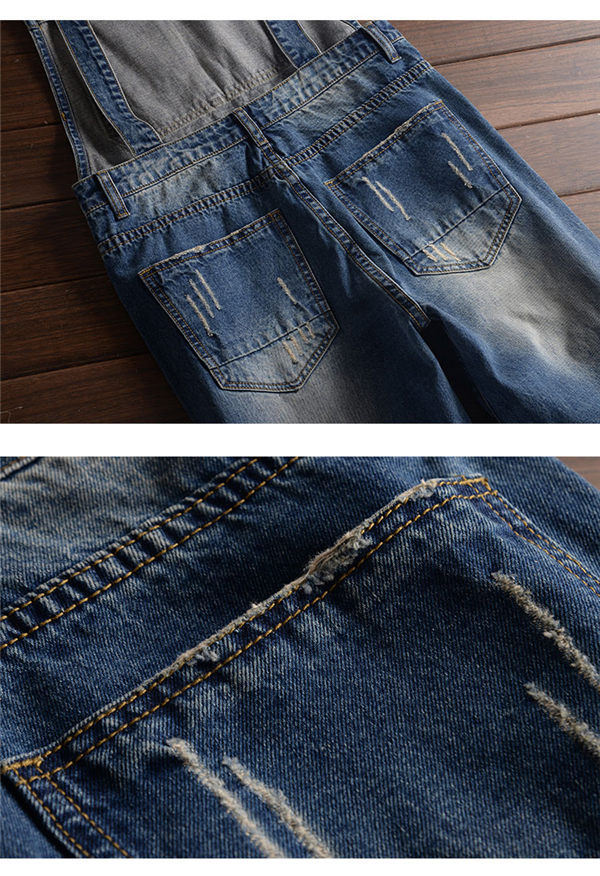 サロペット メンズ つなぎ オールインワン ダメージ加工デニム ジーンズ ゆったり 大きいサイズ インディゴ ネイビー 春秋 送料無料
