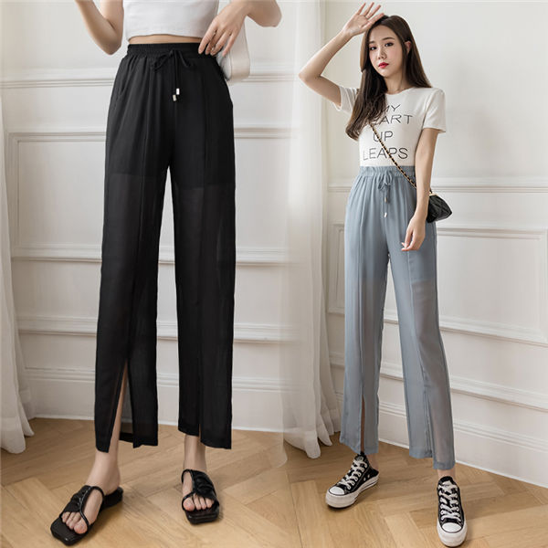 レディース ワイドパンツ カジュアルパンツ スリット ボトムス パンツ ズボン 楽ちん ウエスト紐 きれいめ レディース 夏 美脚 涼しい 送料無料