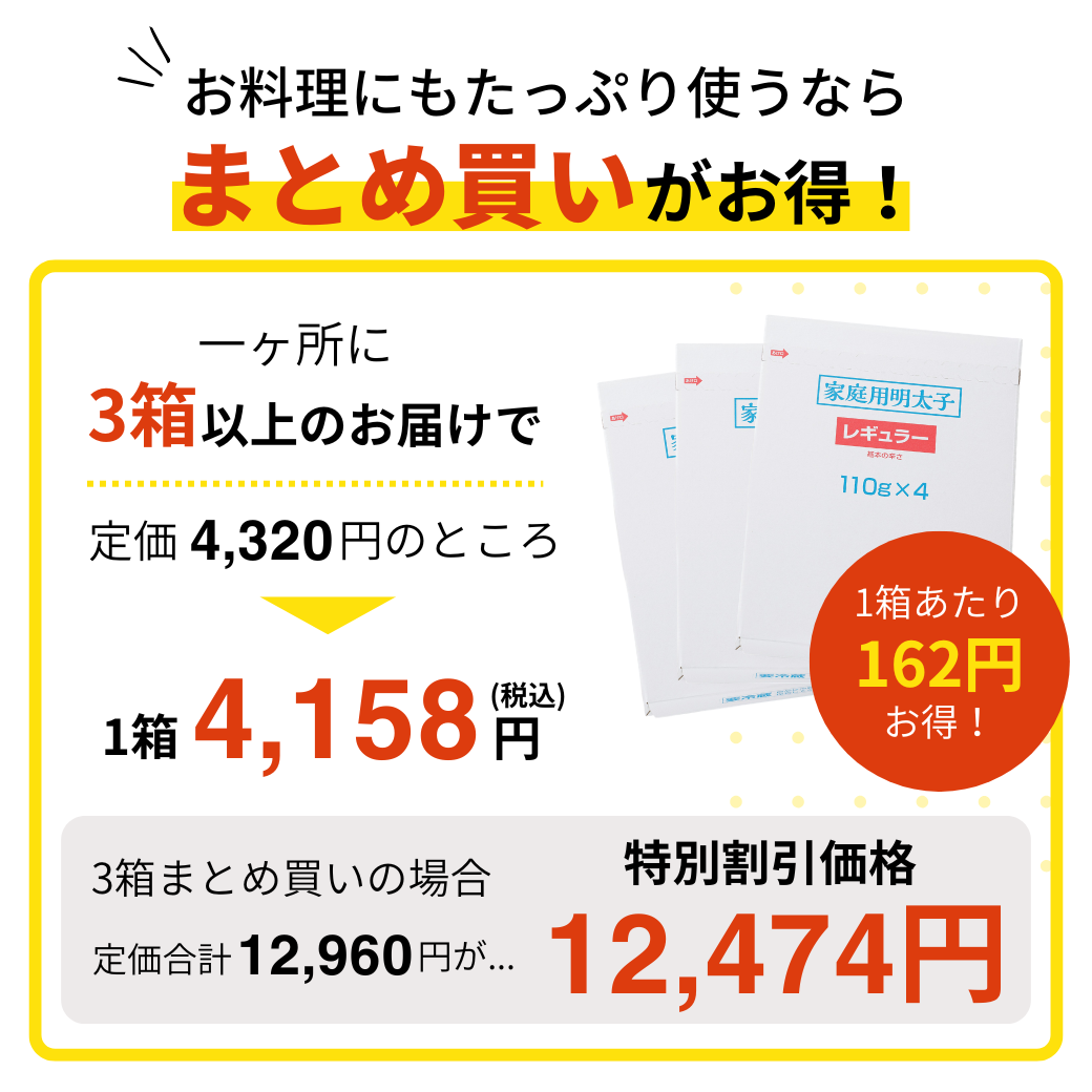 お届け先1ヶ所につき3箱以上のご注文をいただくと、1箱あたりのお値段が4,158円(税込)となります。