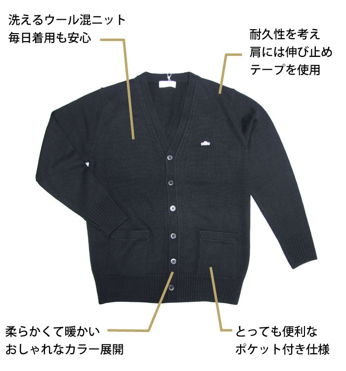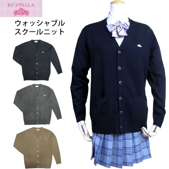 BE STELLA スクールカーディガン ウォッシャブルニット BK918 ウール混 サイズ /S〜LL