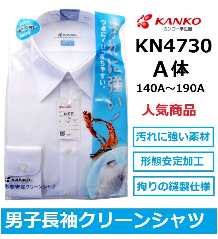 カンコー男子長袖スクールシャツ KN4730 (A体)140A〜185A
