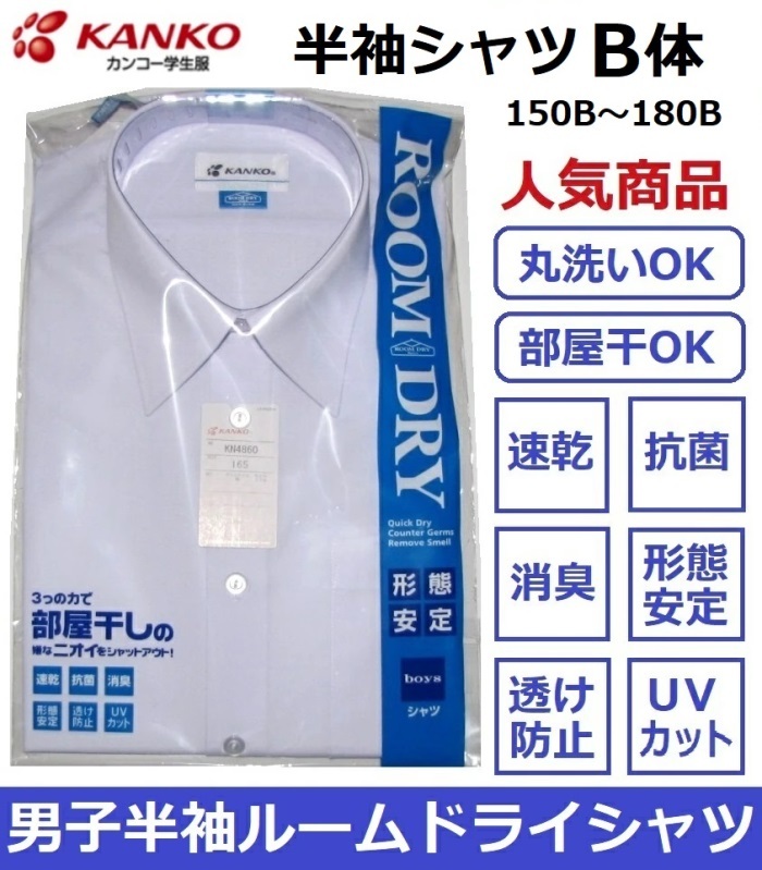カンコー男子半袖スクールシャツ KN4860 ルームドライシャツ (B体)150B〜180B