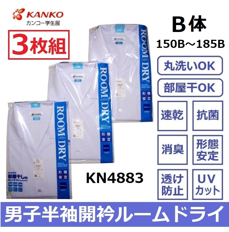 カンコー男子半袖開襟スクールシャツ KN4883 3枚組 サイズ(B体)150B〜190B