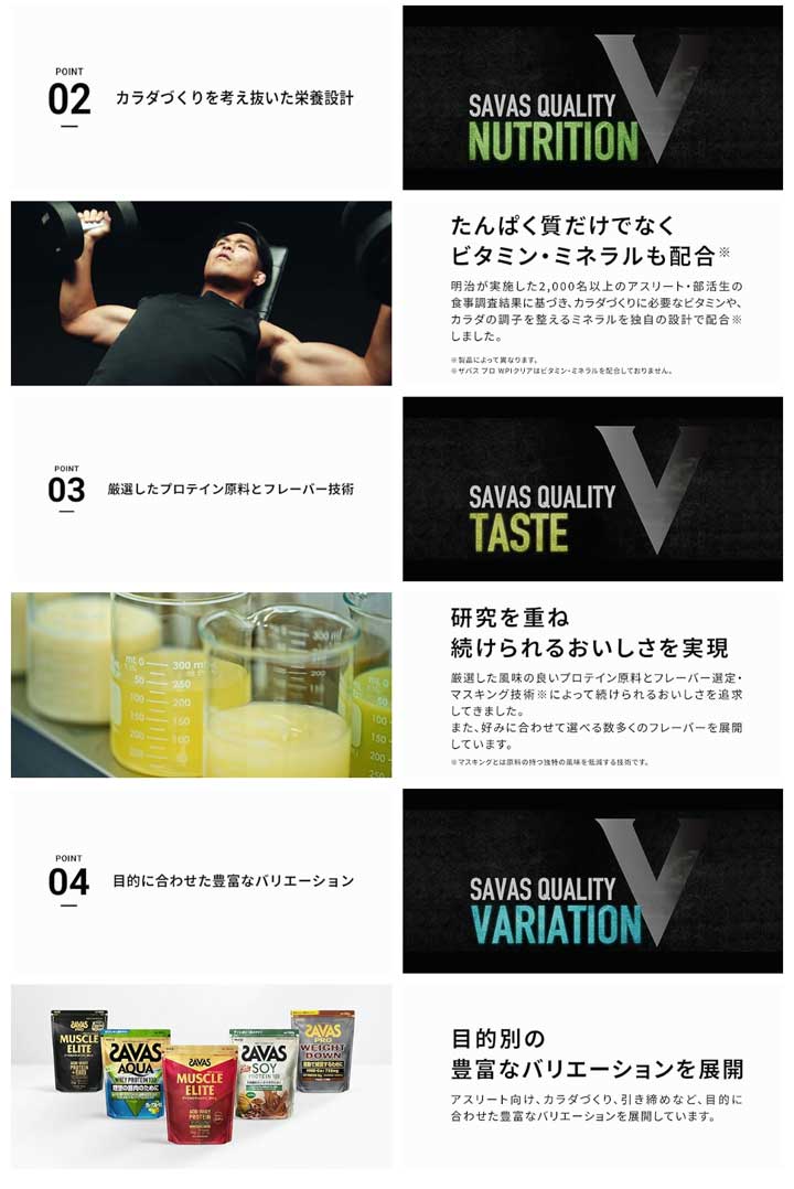 「ザバス ホエイプロテイン100」は、明治が実施したアスリートの食事調査結果に基づき、アスリートのカラダづくりに必要とされるビタミンを独自に設計して配合しています。