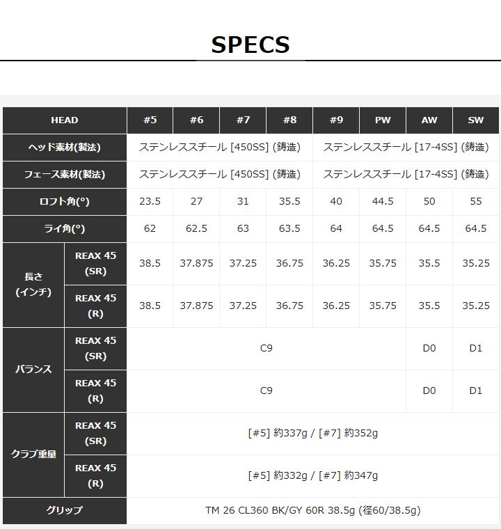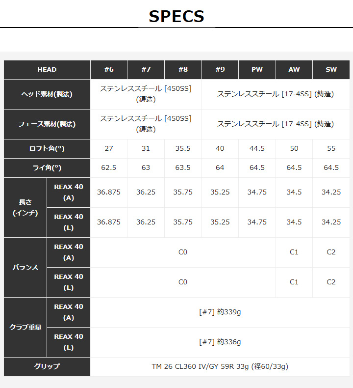 【フェース素材(製法)】 (#6〜8) ステンレススチール [450SS] (鋳造)