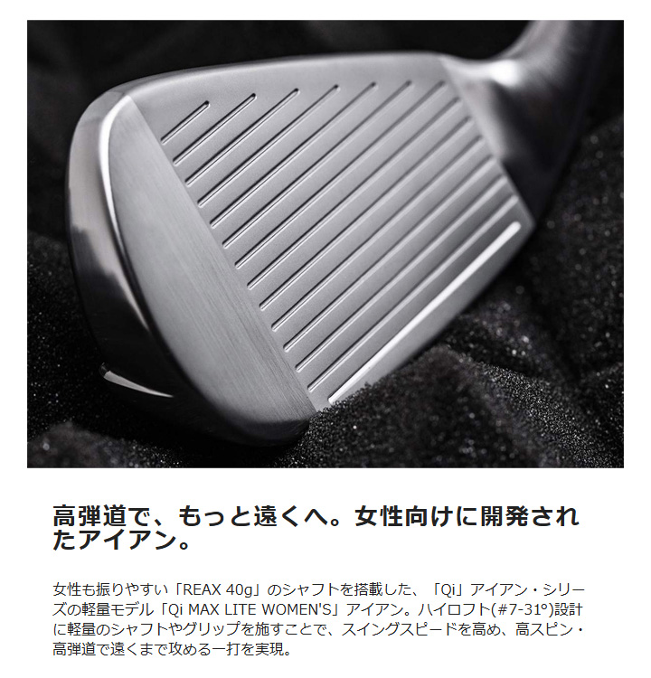 ゴルファーが求める寛容性・直進性・飛距離…そのすべてを追求し、狙ったところに高弾道でしっかり飛ばせる全く新しい「Qi MAX LITE」アイアン。今作では、さらに打音、打感にこだわり、フェースのセンターを外したショットでも心地よく感じられる設計に。飛距離に悩むベテランゴルファーから、ゴルフを始めたばかりの方まで、スコアメイクの武器になるアイアン。