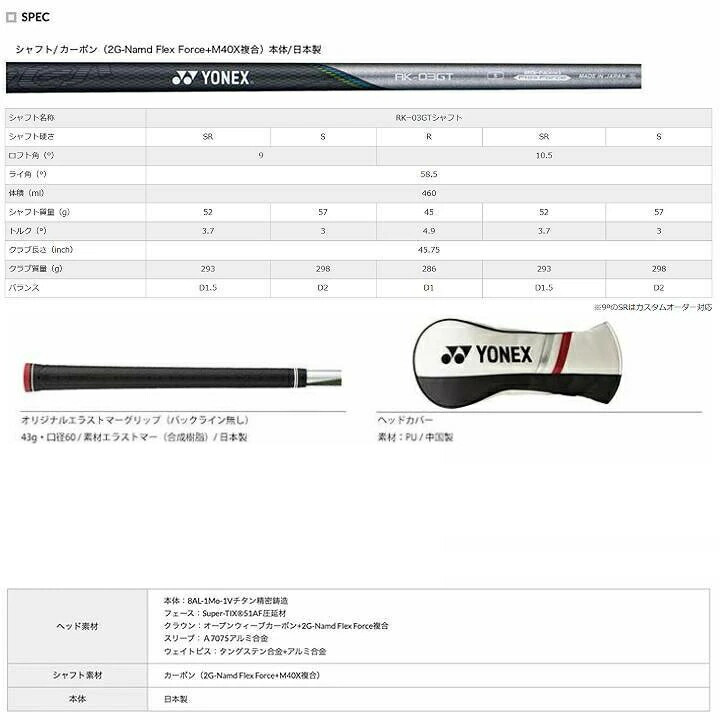 ヨネックス イーゾーン GT【460】ドライバー【10.5°/S】シャフト:RK-03GT カーボン EZONE YONEX 2022