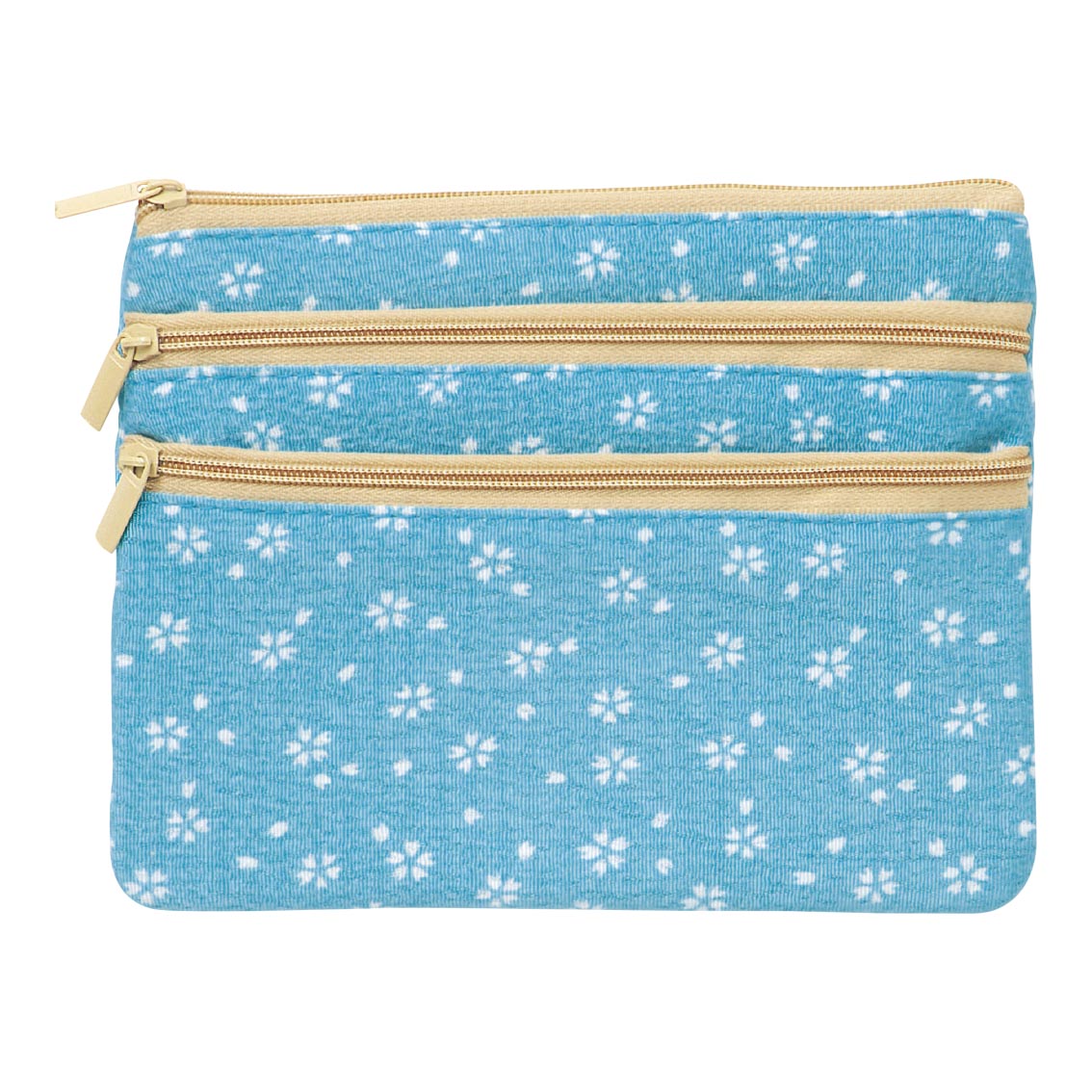 ちりめん3ルームポケットポーチ A/小桜ブルー (6F3310-BL)