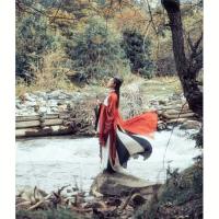 中国古代 唐装 漢服 コスプレ衣装 中華チャイナ風 2点セット 竹柄 レッド シフォン中華風撮影 演出服 振袖 舞台衣装 コスチューム ハロウィン 学園祭 文化祭 舞踏会 d9218c0c0w7