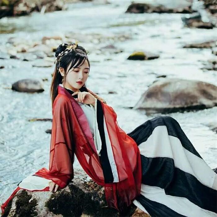 中国古代 唐装 漢服 コスプレ衣装 中華チャイナ風 2点セット 竹柄 レッド シフォン中華風撮影 振袖 舞台衣装 コスチューム ハロウィン 学園祭