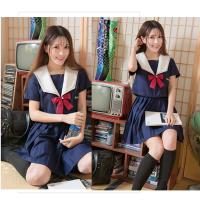 女子高生 スクール制服 学生清純 ネイビー 定番の可愛いセーラー服 コスプレ衣装 上下セット 上衣 スカート春夏 秋 短袖 長袖 ハイソックス付き