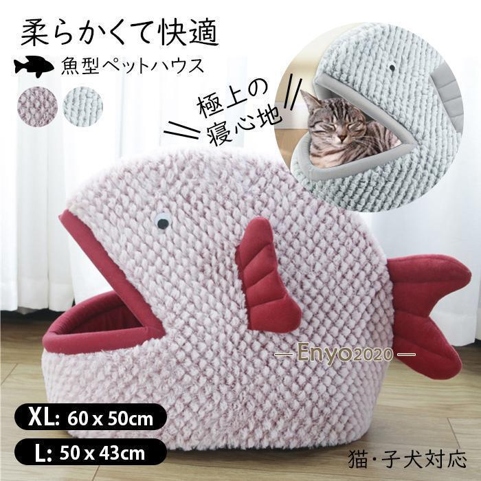 ペットハウス ペットベッド 暖かい 魚型 滑り止め 猫 犬 室内用 折り畳み 収納便利 寝床 柔らか ペット用 ボリューム あったか 安眠 洗濯可